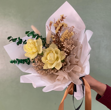 Setiap produk dibuat menggunakan bunga pilihan terbaik untuk memastikan tampilan yang cantik, harmonis, dan tahan lama.