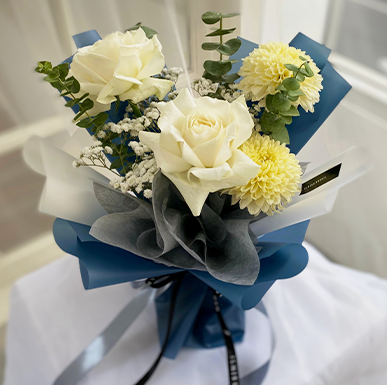 Bagi pelanggan yang ingin sesuatu yang unik, kami menawarkan rangkaian omakase. Anda cukup menyampaikan tema warna, bentuk rangkaian misalnya bentuk bouquet atau vase dan nuansa yang diinginkan—sisanya kami olah dengan kreativitas penuh menggunakan bunga terbaik yang tersedia hari ini.