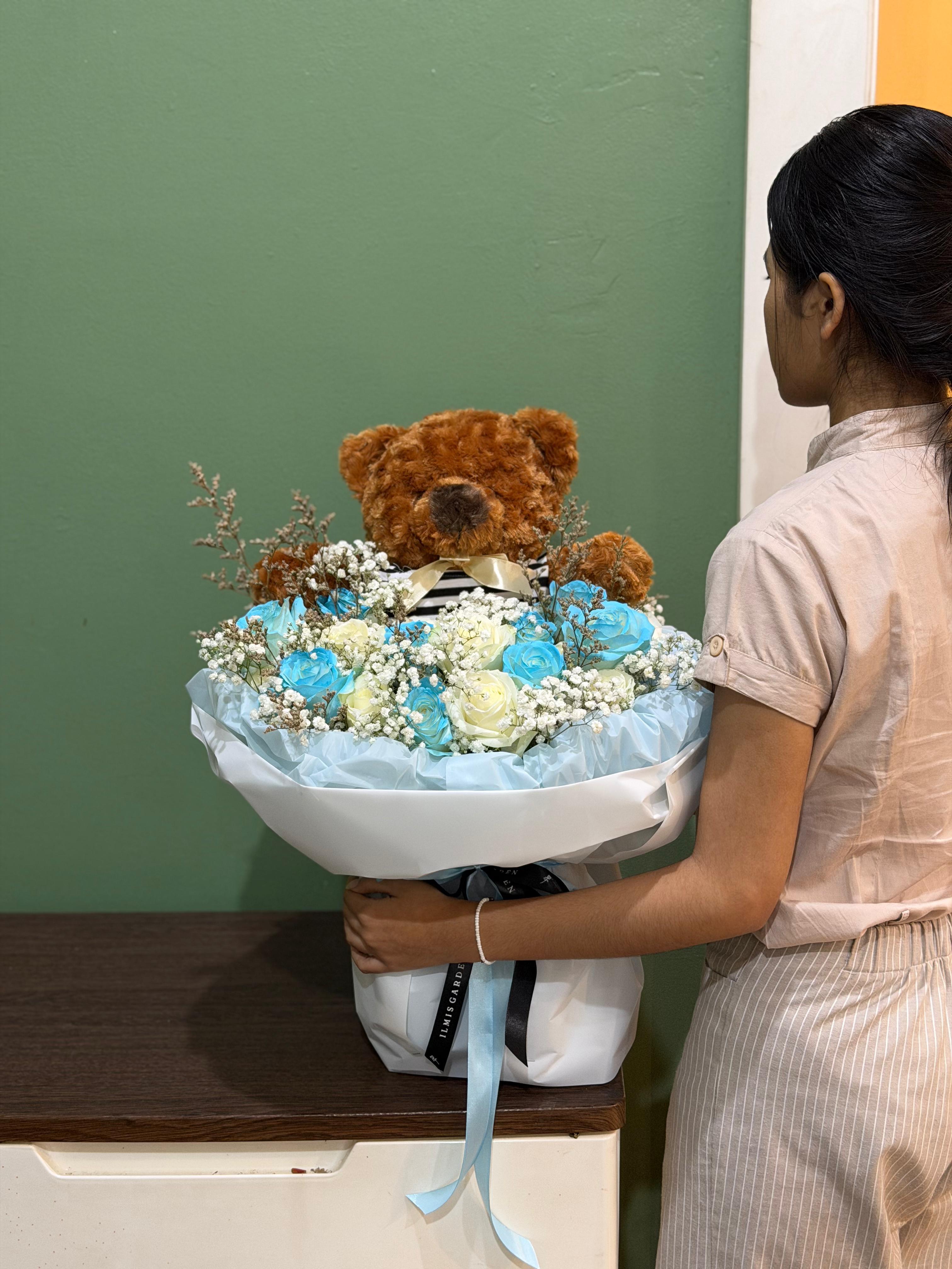 Teddy Charm adalah perpaduan 20 tangkai bunga mawar dengan menambahkan boneka teddy bear. Rangkaian yang mengkombinasikan bunga dengan boneka termasuk dalam rangkaian modern, adanya boneka dalam rangkaian ini memberikan kesan sweet, cute, dan elegan.