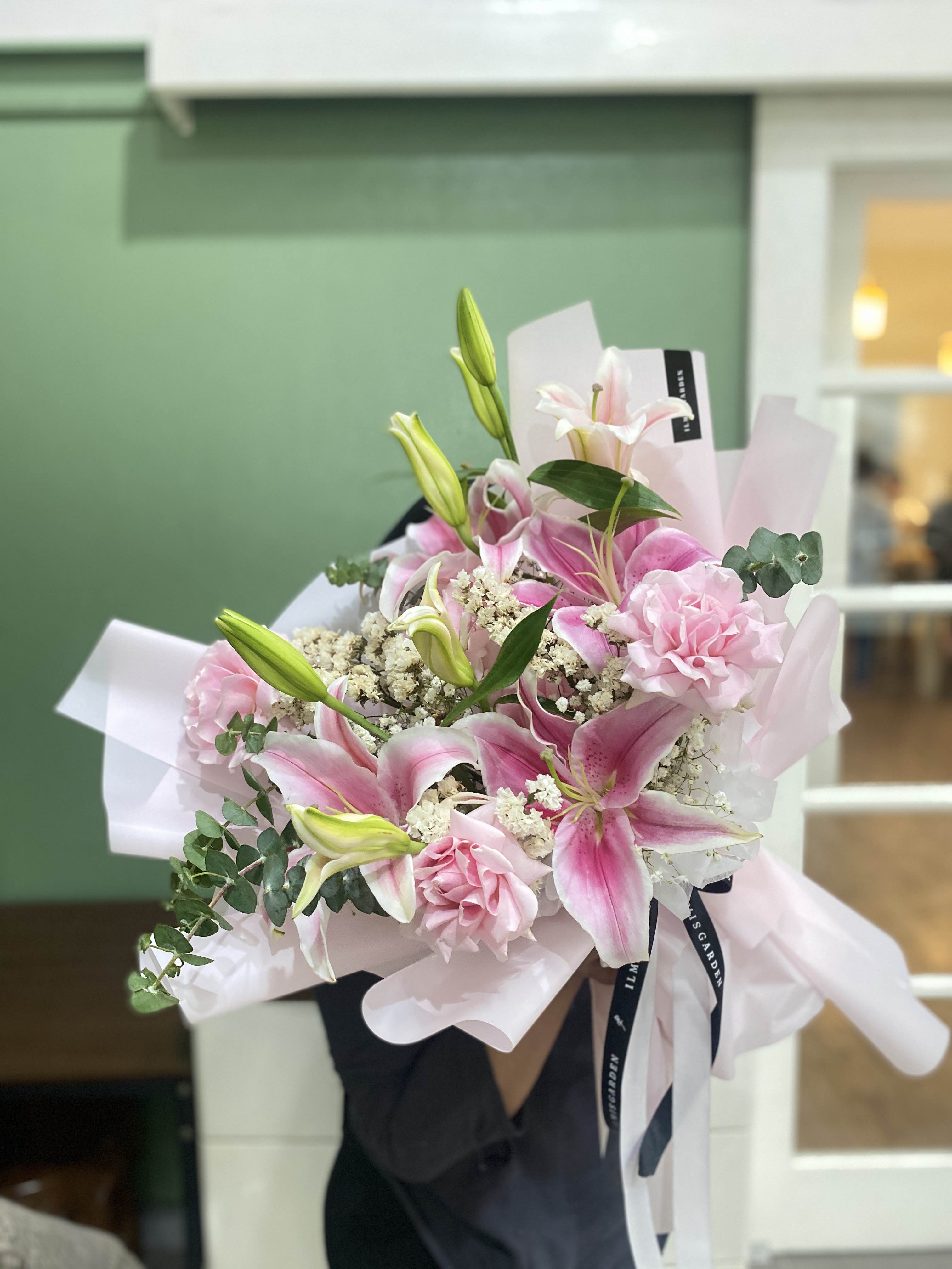 Blushing Garden Bouquet adalah rangkaian bunga bernuansa pink lembut yang memancarkan kehangatan, kebahagiaan, dan kasih sayang yang tulus. Kombinasi lily dan mawar yang mekar anggun memberikan kesan mewah sekaligus romantis, menjadikannya pilihan sempurna untuk merayakan cinta, ulang tahun, anniversary, kelulusan, atau sebagai hadiah istimewa untuk orang yang tersayang.