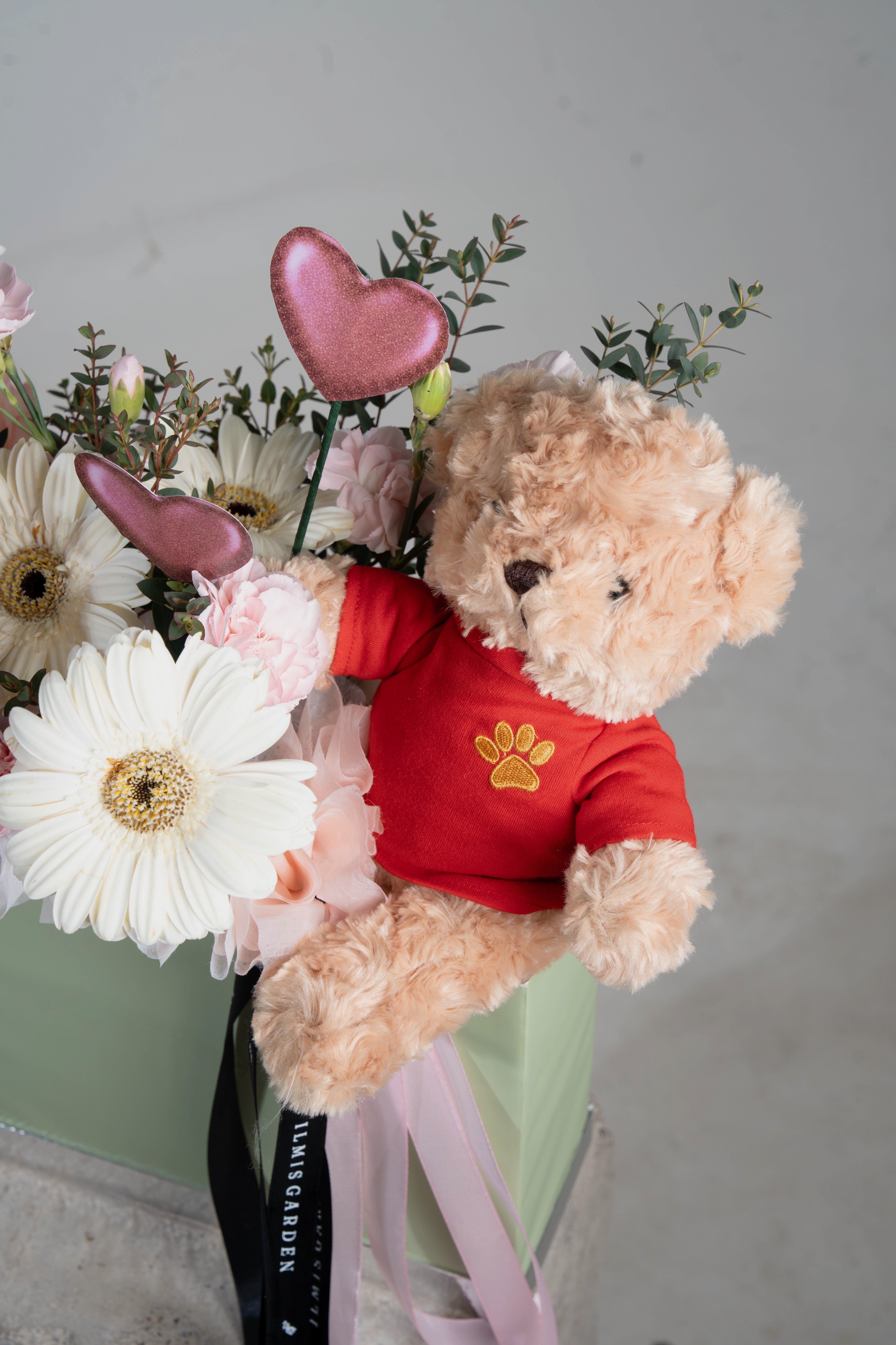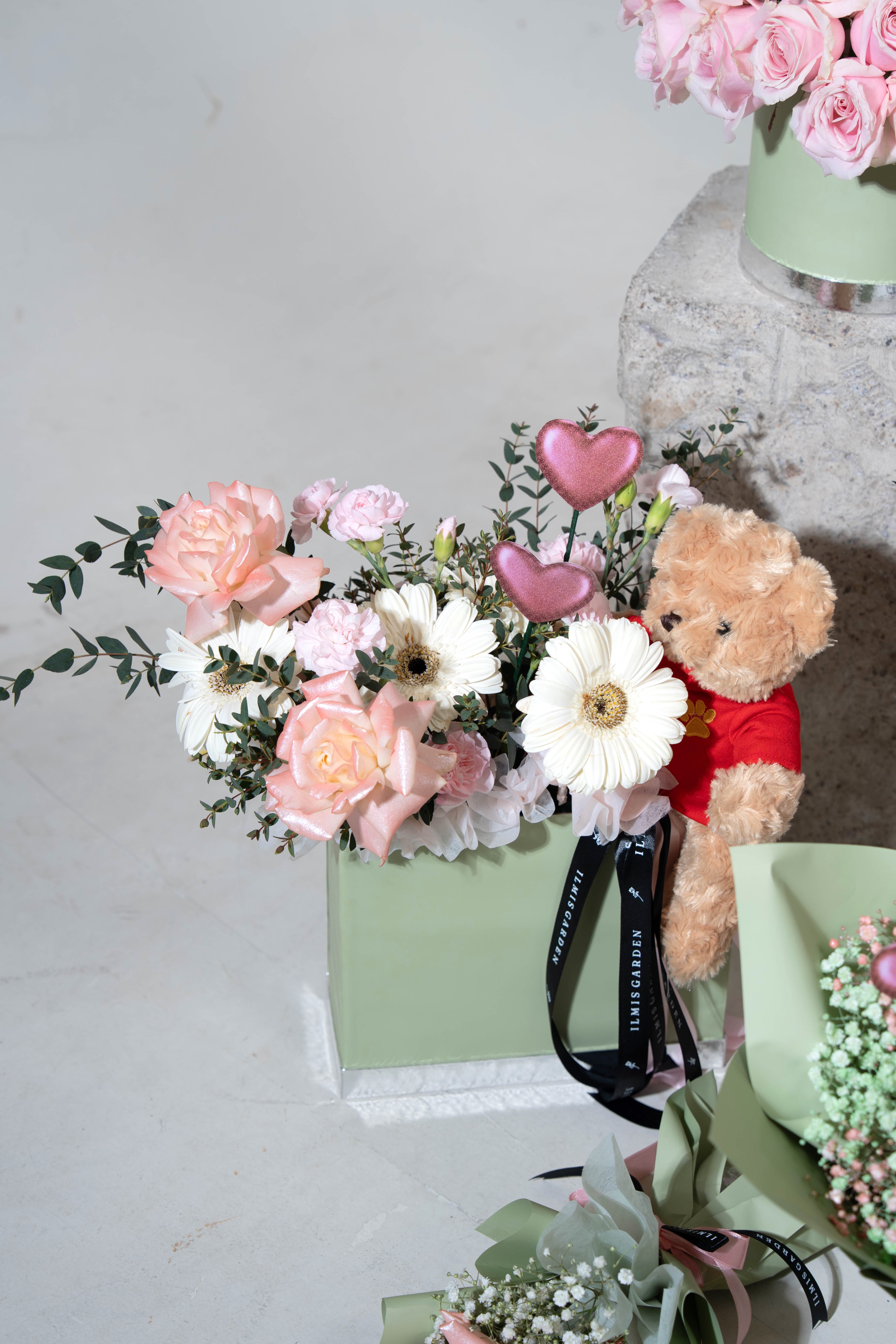 Sweet Pebby Bloom adalah rangkaian bunga bernuansa lembut dan romantis yang memadukan keindahan bunga mawar sweet pink yang mekar sempurna, gerbera putih, juga sentuhan carnation pink yang menciptakan kesan romantis, dan manis dari boneka.