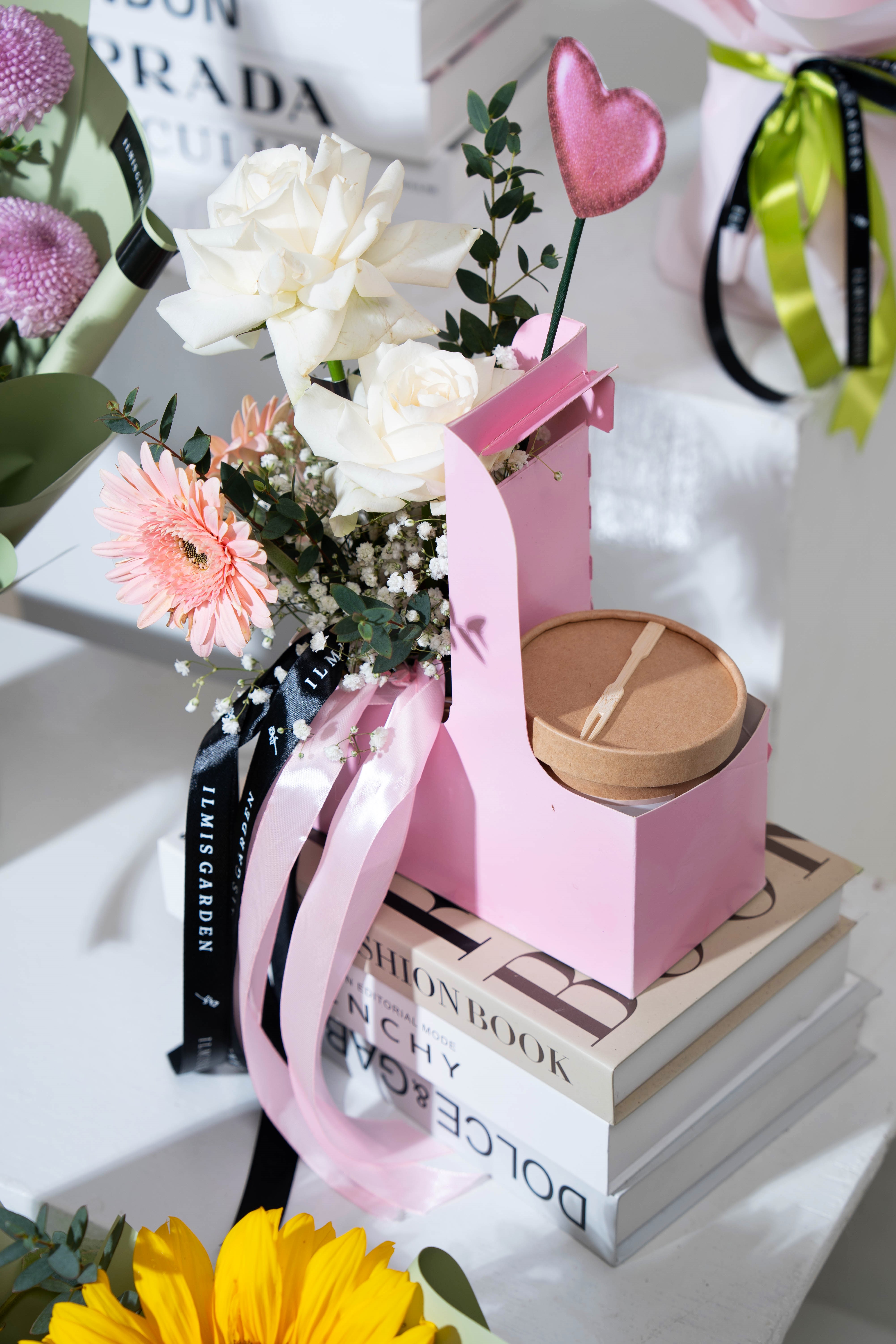 Brownies and Bloom adalah rangkaian hadiah manis yang memadukan keindahan bunga mawar segar dan gerbera pink yang manis, dengan sajian brownies lezat dalam satu kemasan elegan.