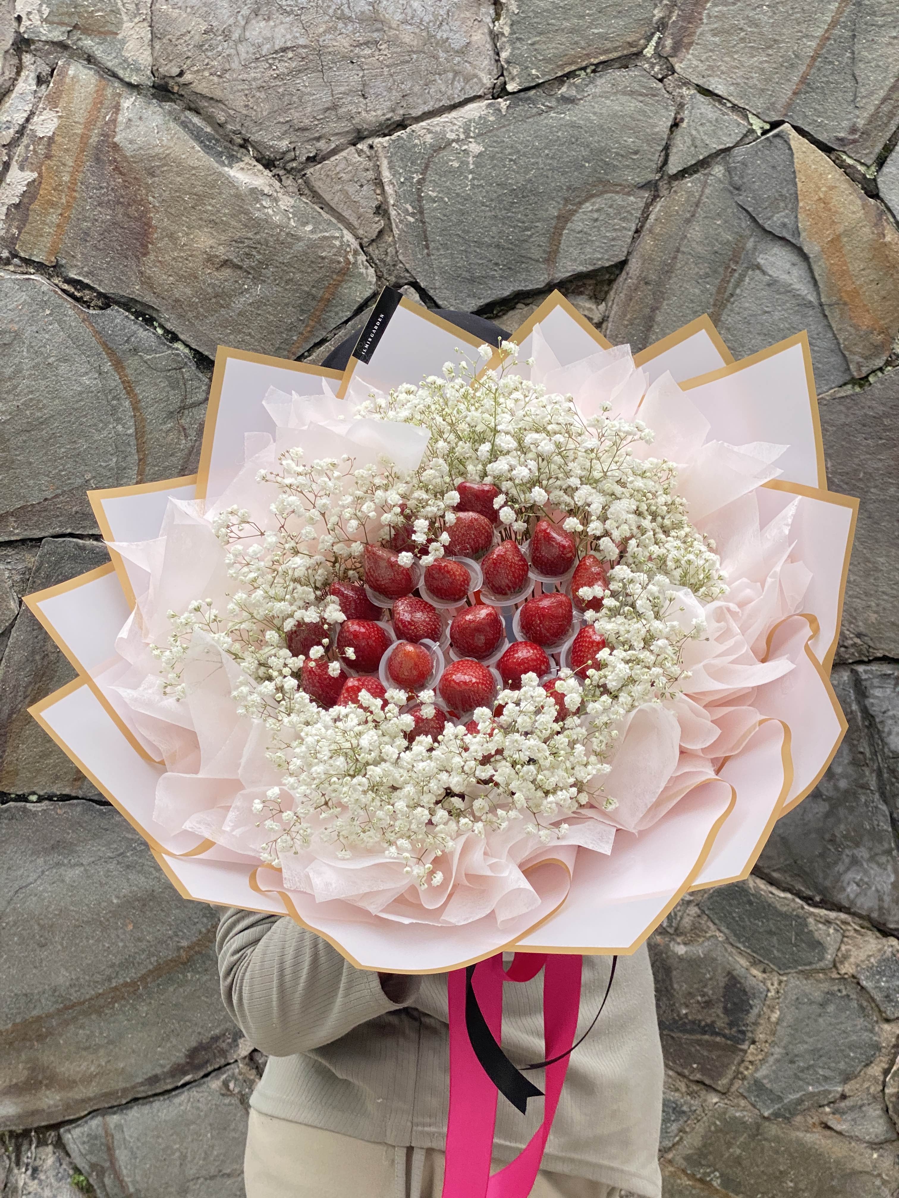 Bouquet ini terdiri dari 24 buah strawberry dan baby's breath sebagai filler.