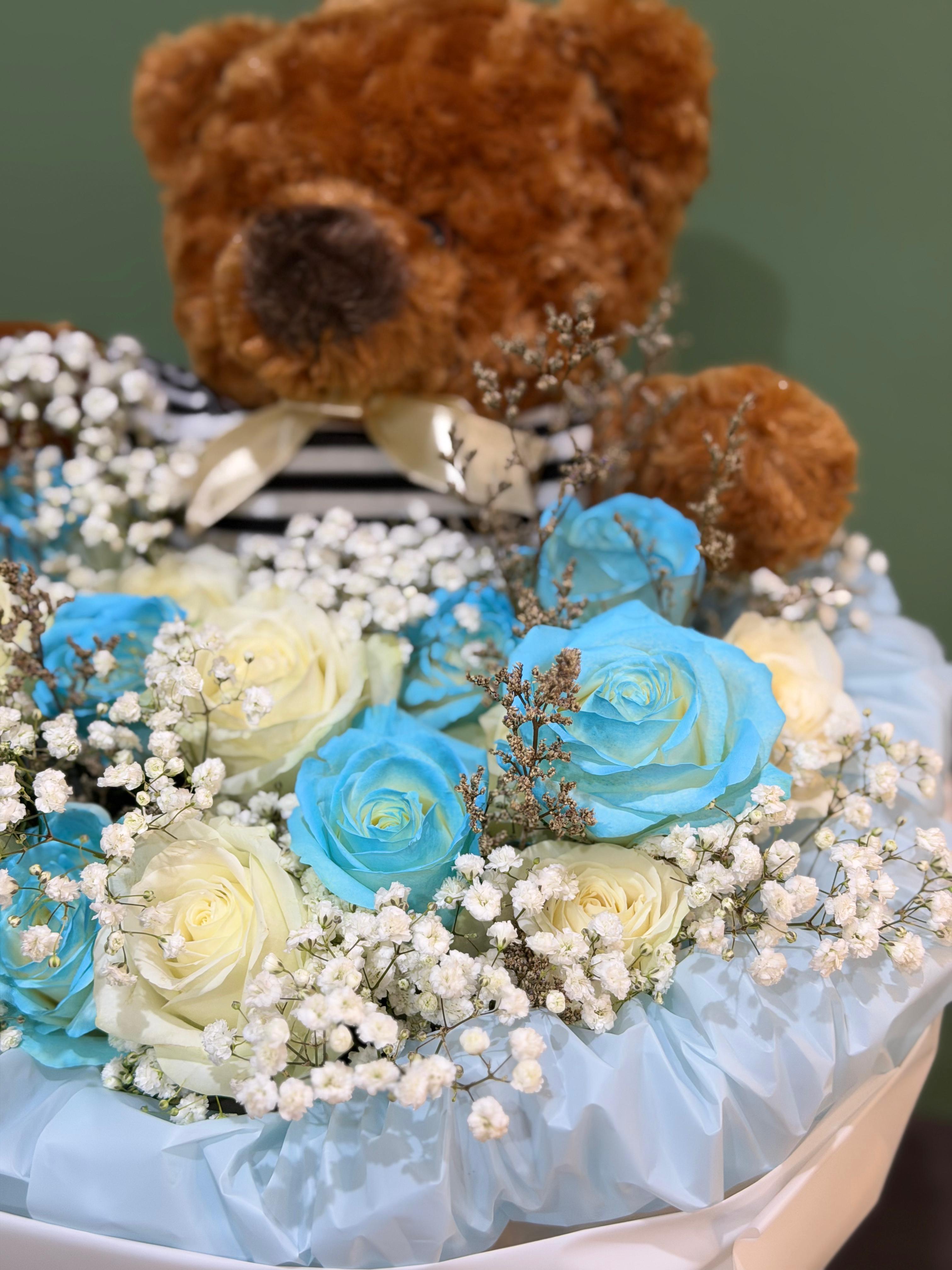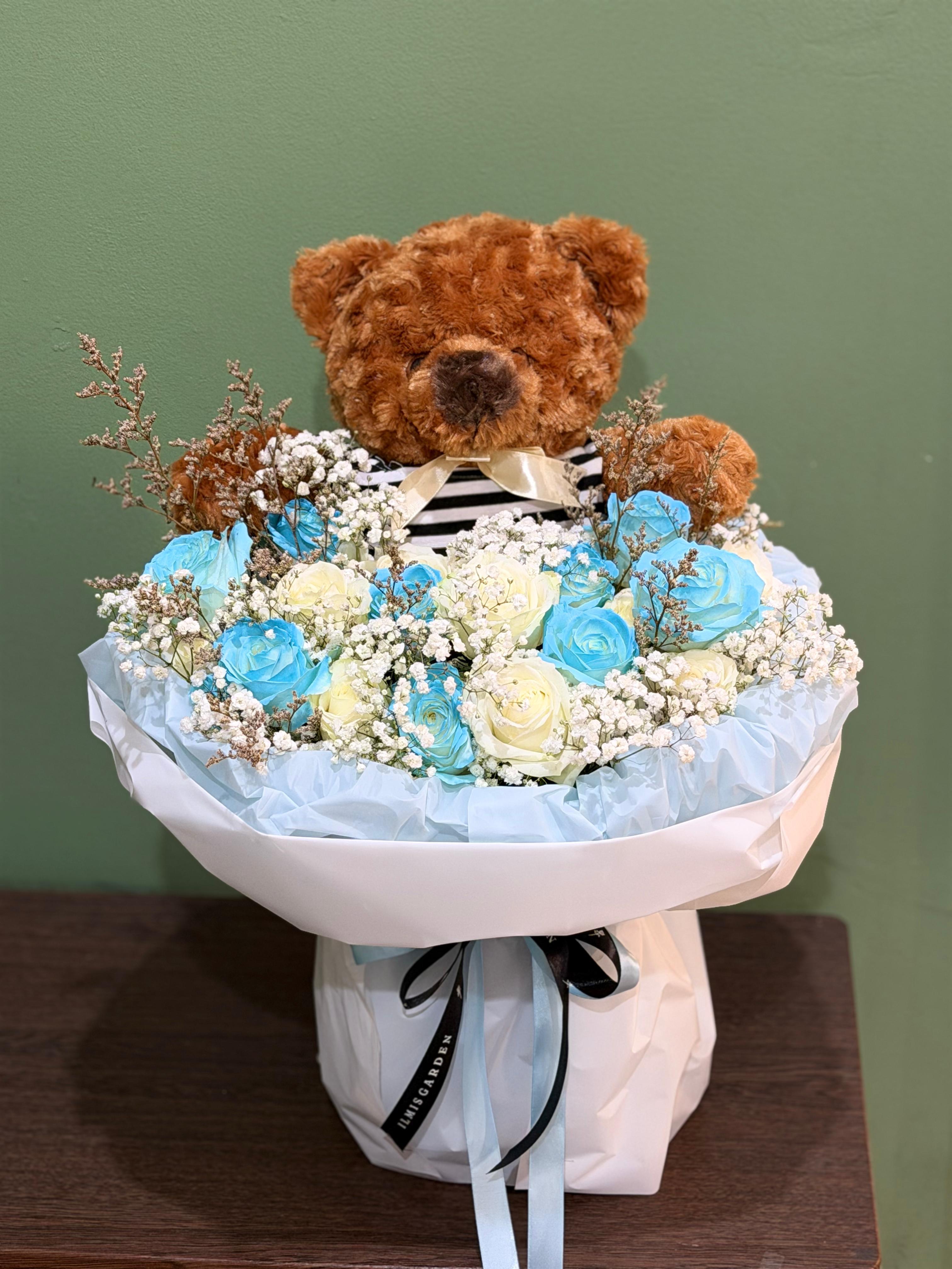Teddy Charm adalah perpaduan 20 tangkai bunga mawar dengan menambahkan boneka teddy bear. Rangkaian yang mengkombinasikan bunga dengan boneka termasuk dalam rangkaian modern, adanya boneka dalam rangkaian ini memberikan kesan sweet, cute, dan elegan.